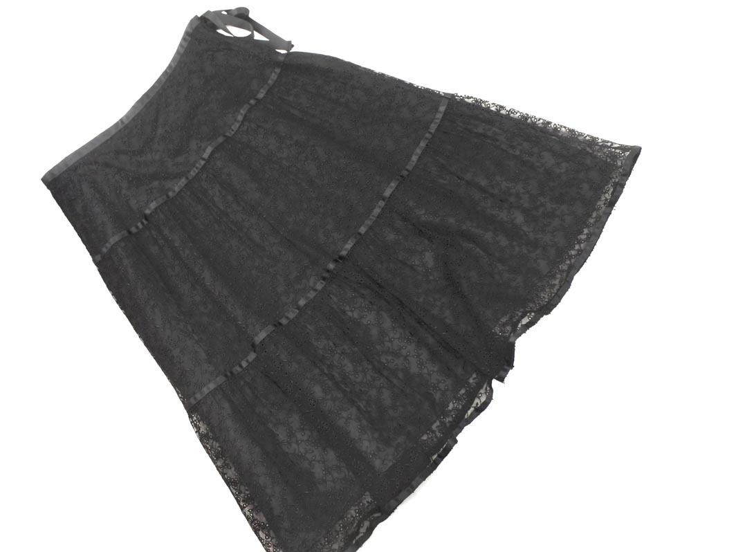 > ネコポスOK KUMIKYOKU 組曲 PRIER リボン 総レース スカート size2/黒 ■◇ ☆ fgc8 レディース
