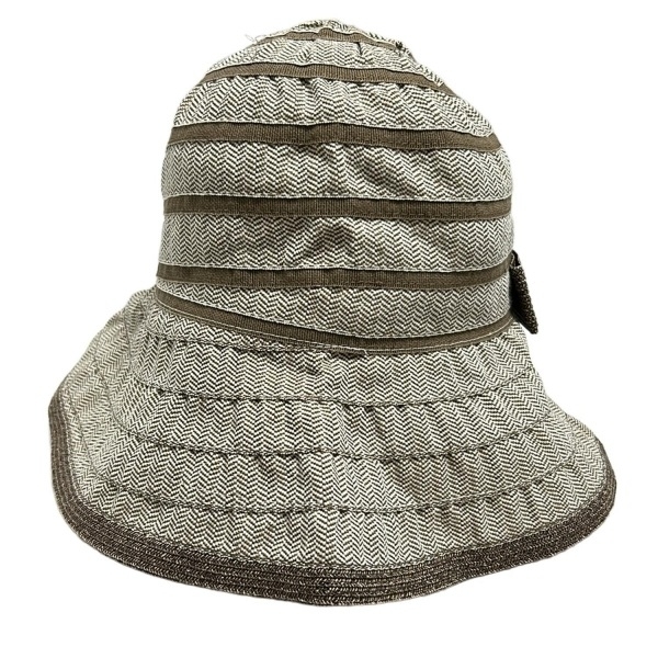 - レリアン Leilian ハット 57cm - コットン ベージュ×ライトブラウン ストライプ/リボン 帽子