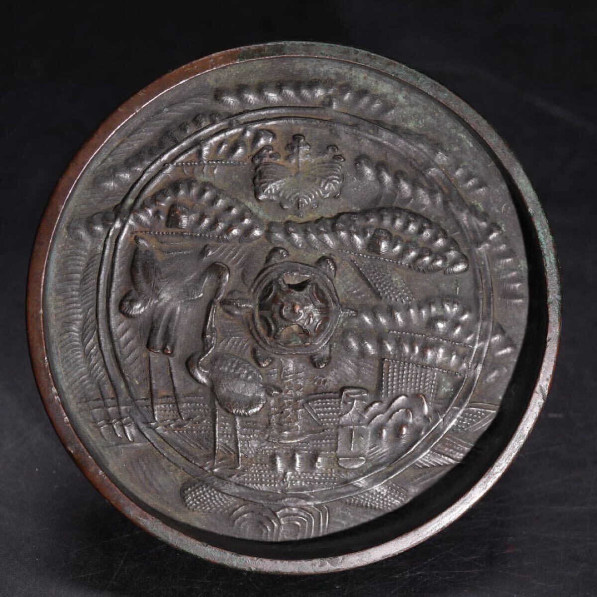- 時代 銅鏡 鳥文 / 時代物 古鏡 円鏡 鏡 彫金 金工 煎茶飾 .G2162