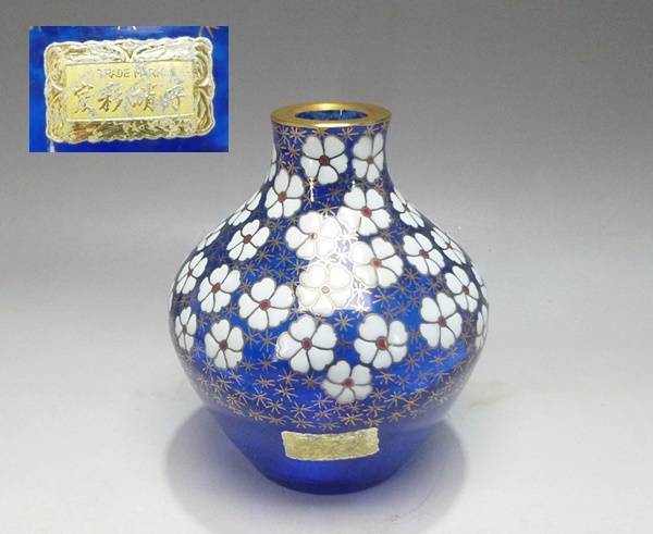 - 《ジャムルK》◆kks0729-134◆雨宮喜能登 窯彩硝子 ガラス 花瓶 金彩 小花図 一輪挿し フラワーベース 約560g ガラス工芸 作家物 花入