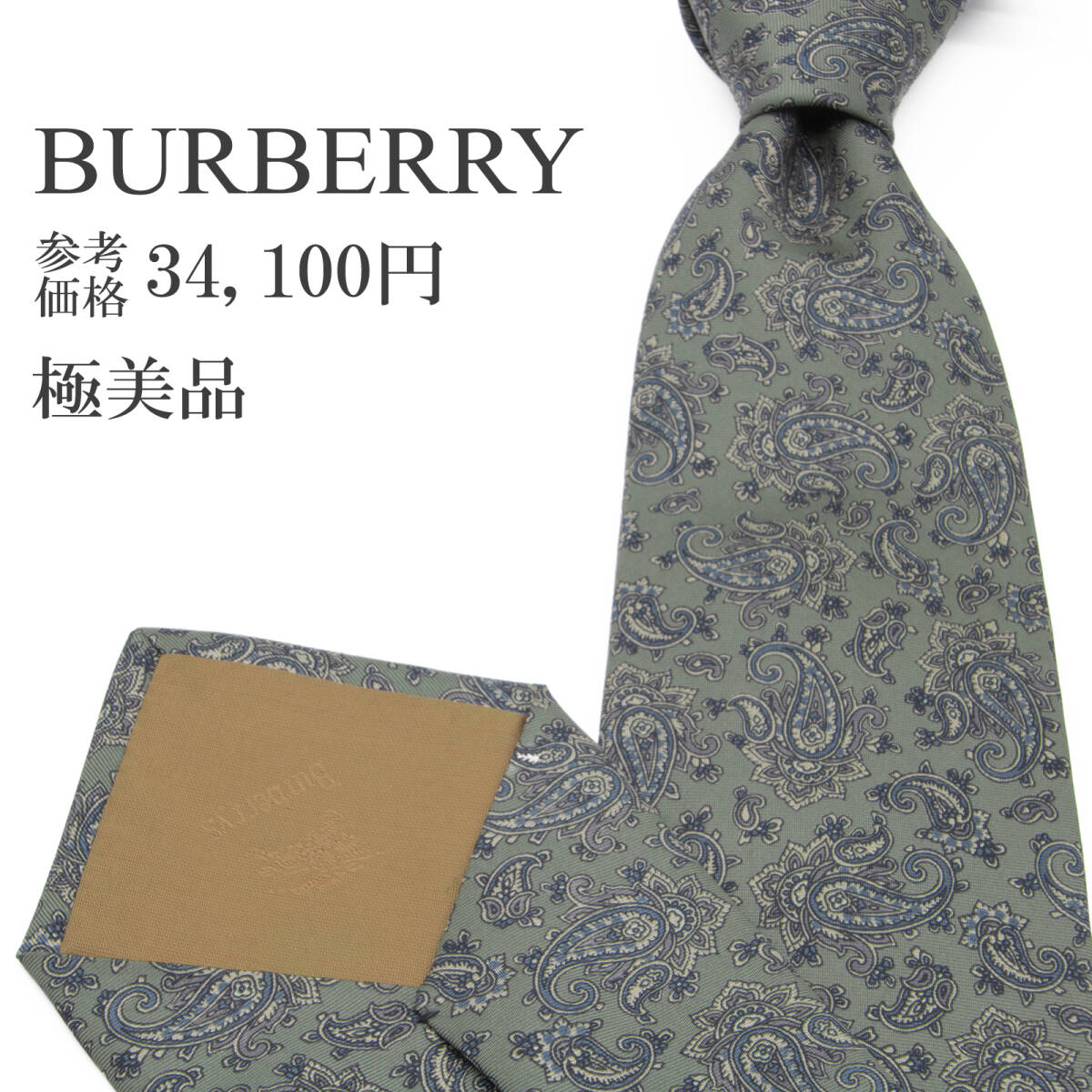 - 送料無料 バーバリー ネクタイ シルク 緑 グリーン 灰色 グレー ビジネス カジュアル ペイズリー 総柄 ブランド 珍しい おしゃれ 綺麗 P224