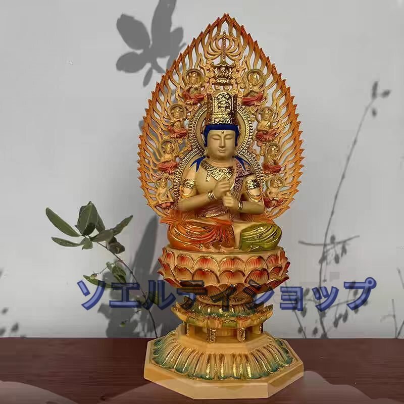 - 仏教美術 精密彫刻 仏像 手彫り 総檜材製 極上彫 木彫仏像 大日如来座像 高さ約28cm
