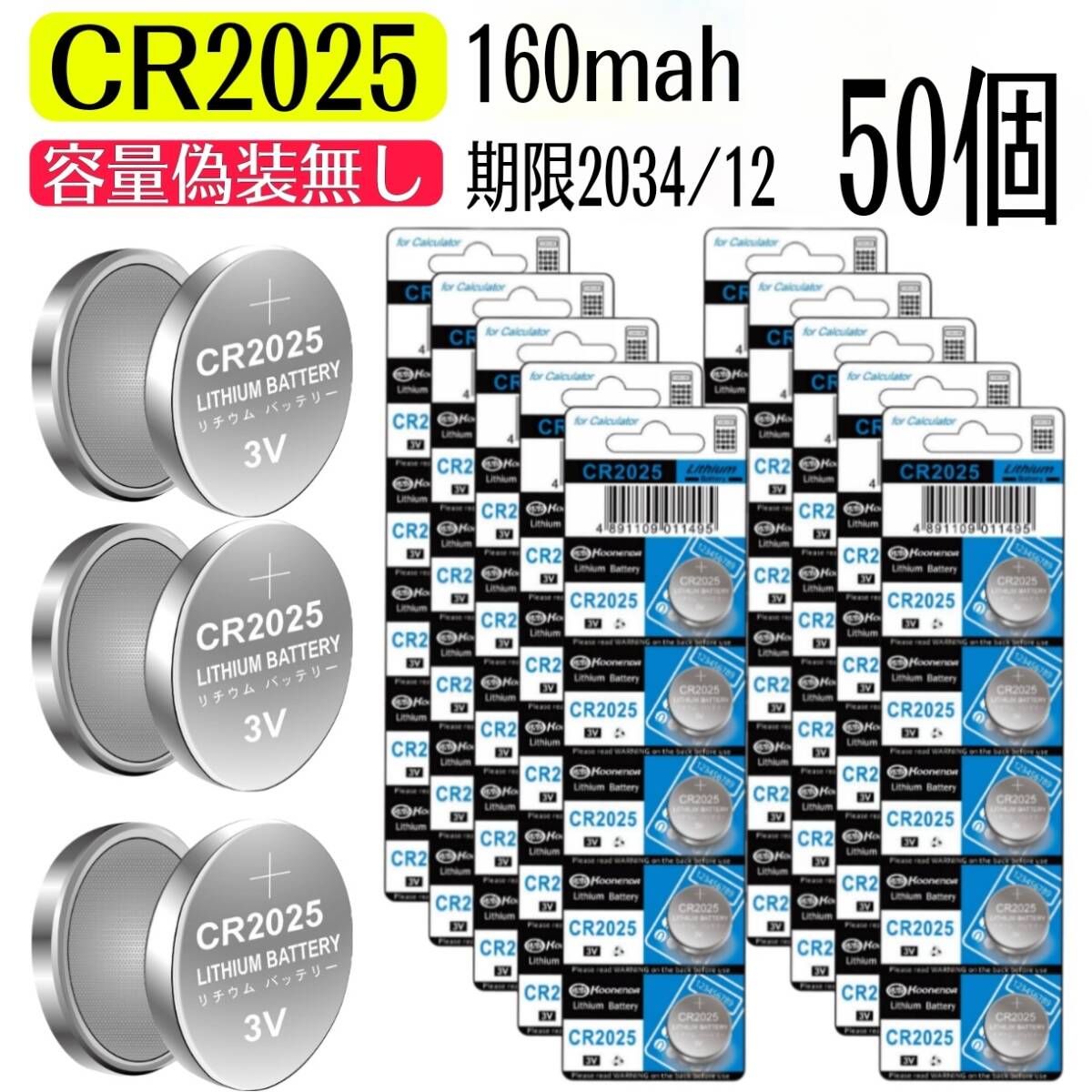 > ボタン電池 CR2025 (3V 160mah)【50個セット】 消費期限2034/12 リチウムコイン電池 DL2025 容量偽装なし