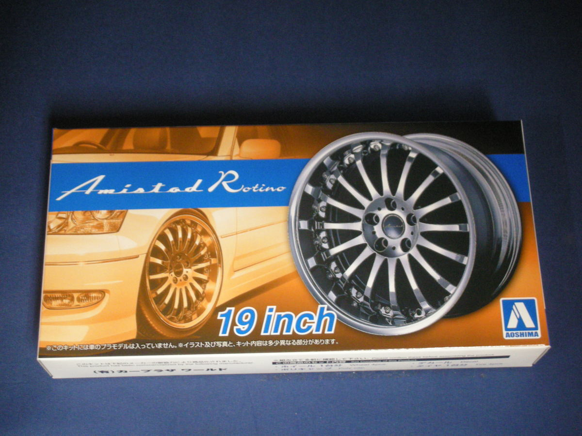 アオシマ【1/24】ザ★チューンドパーツ アミスタット ロティーノ 19インチこのキットには車のプラモデルは入っていません。ホイール・デカール・ポリキャップ・タイヤ・のみです。