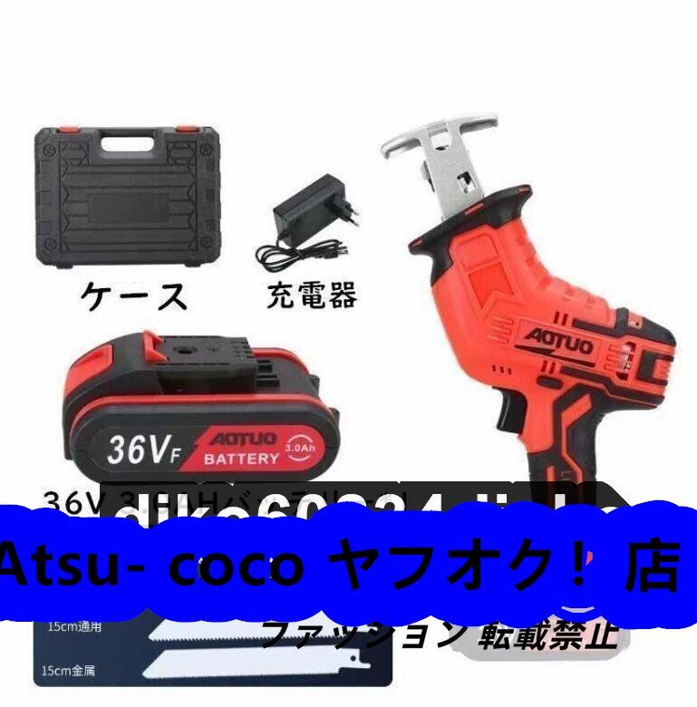 - 電動ノコギリ レシプロソー 充電式 コードレス 36V 無段変速 安全ロックボタン 金属切断 木工切断 庭木剪定 収納ケース付