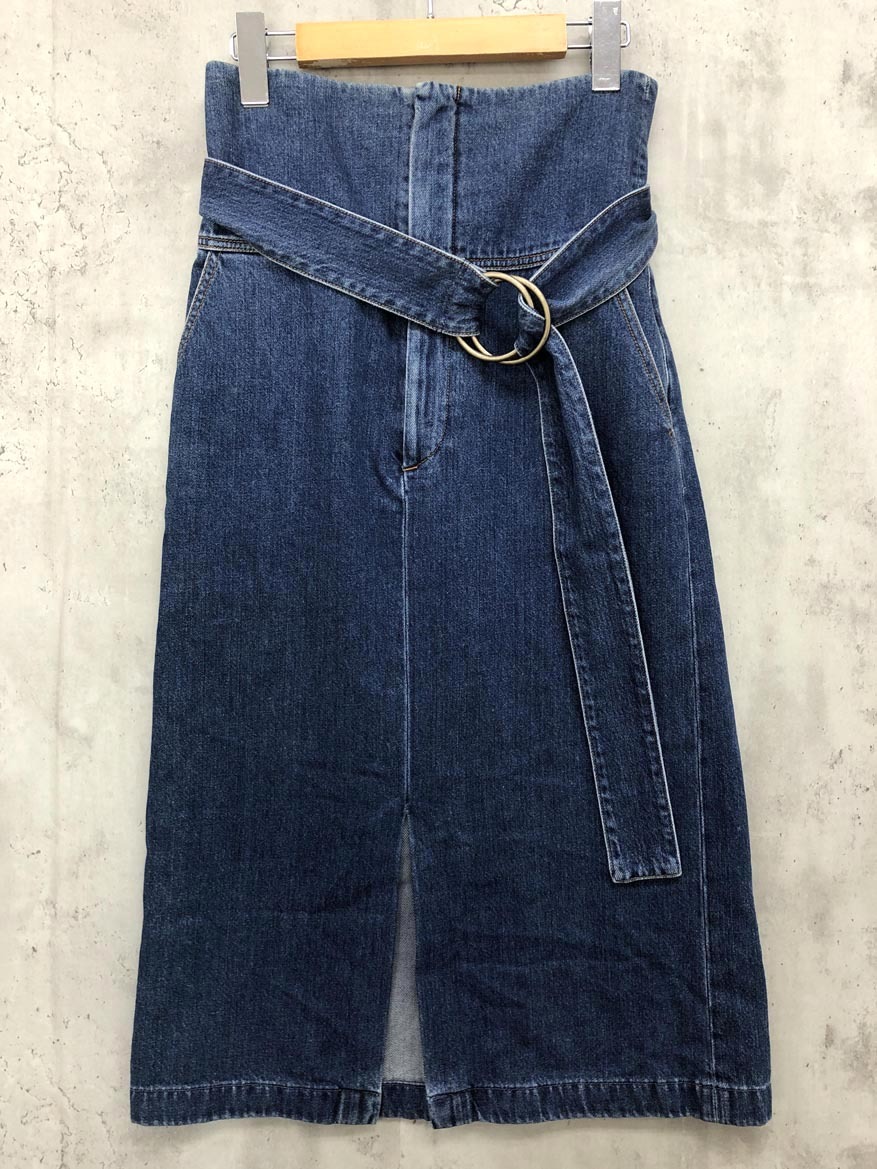 > CURRENTAGE カレンテージ ハイウエスト ベルト付 フロントスリット タイト デニムスカート size1(S)/青 ■■◎ ☆ fgc9 レディース