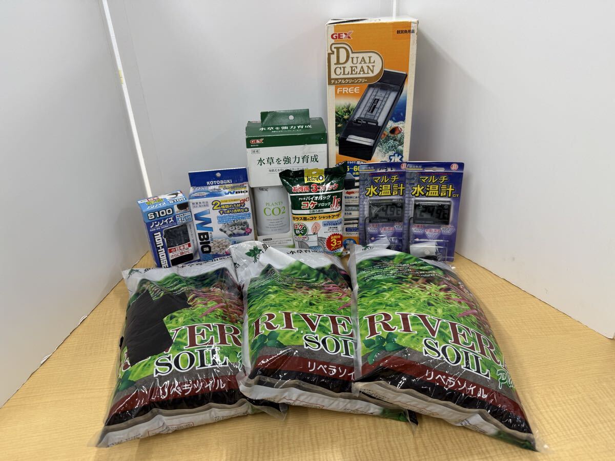> nB 120 マルチ水温計CT×2点 /ダブルバイオ コトブキ/ノンノイズ S100/リベラソイル 3L×3点(1点使用済) 他 水槽グッズ まとめて 現状品