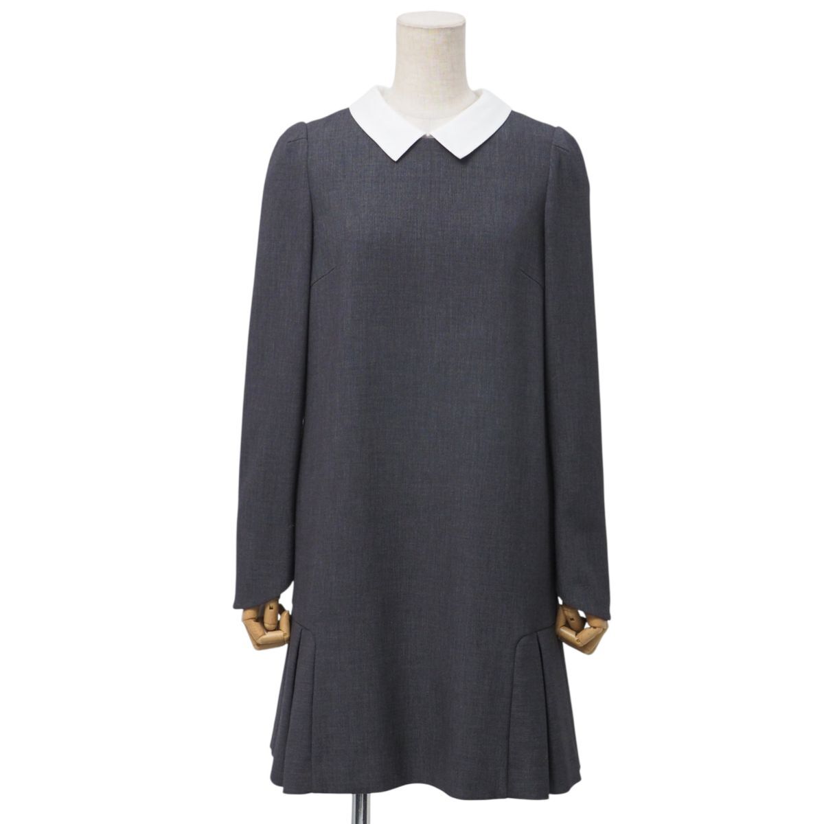 - MH9207☆フォクシーニューヨーク FOXEY NEW YORK 35602 プライベートノワール 襟付き 長袖ワンピース プリーツ切替 グレー サイズ38