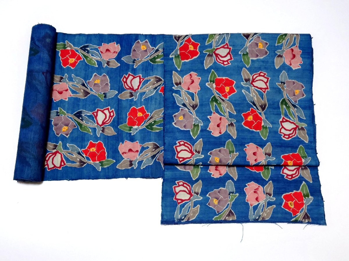 > ◆大特価出品/九寸名古屋帯 反物◆ 型染め 紬 花文様 キモノマルシェ【W-139】