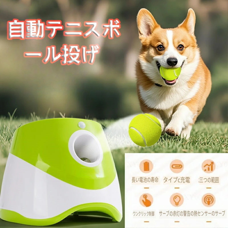 - ペットおもちゃ ボールランチャー 3モード ボール3個付き 遠距離 投球機 犬自動 ボール 投げ グリーン 運動不足解消 充電式 小型 中型犬用