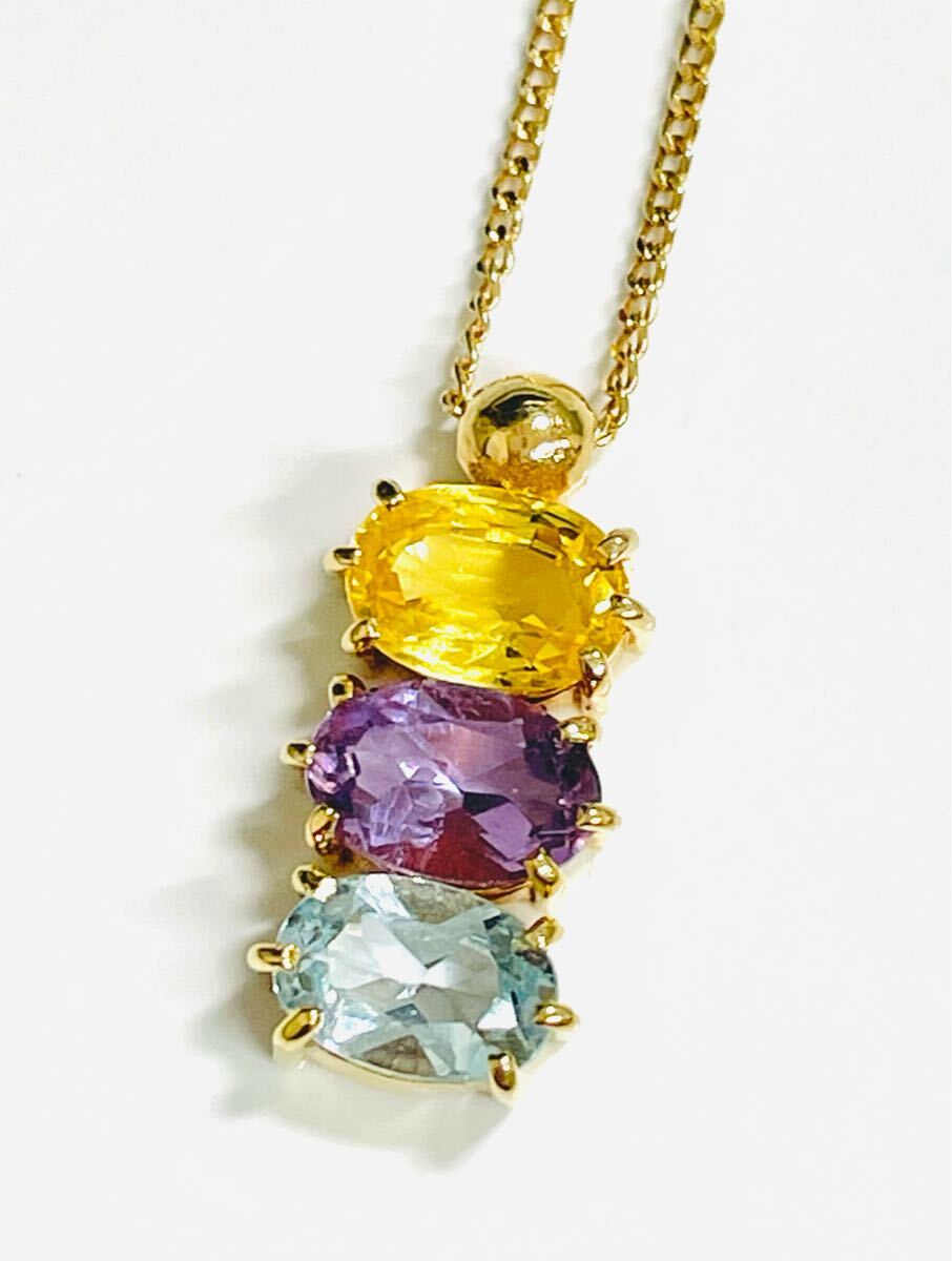 - ☆K18 トパーズ&アメジスト付きプチネックレス 40cm☆