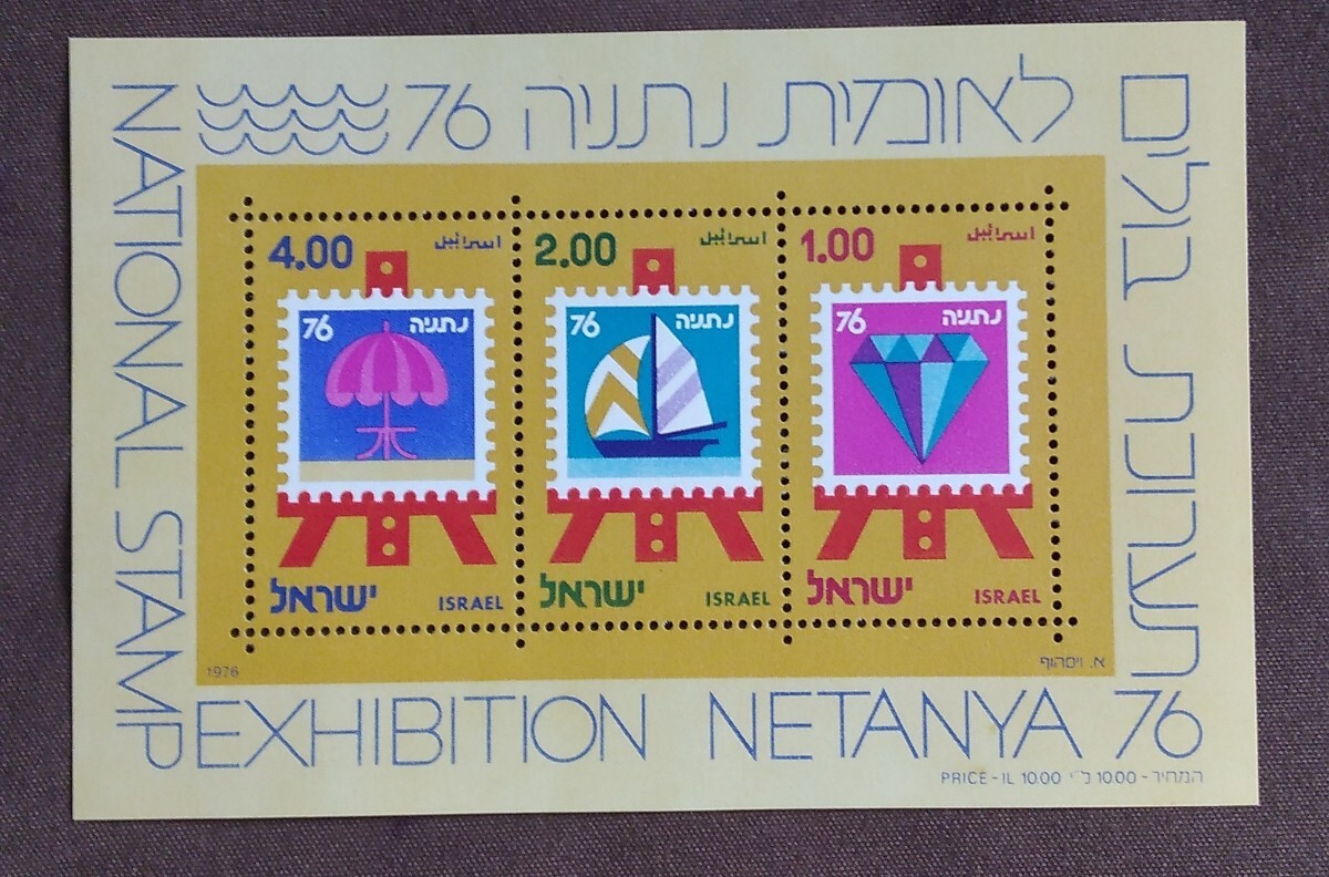 - イスラエル 1976.4.25 ネタニヤ’76 切手博覧会 小型シート キャンパス ヨット ダイヤ パラソル 未使用糊あり
