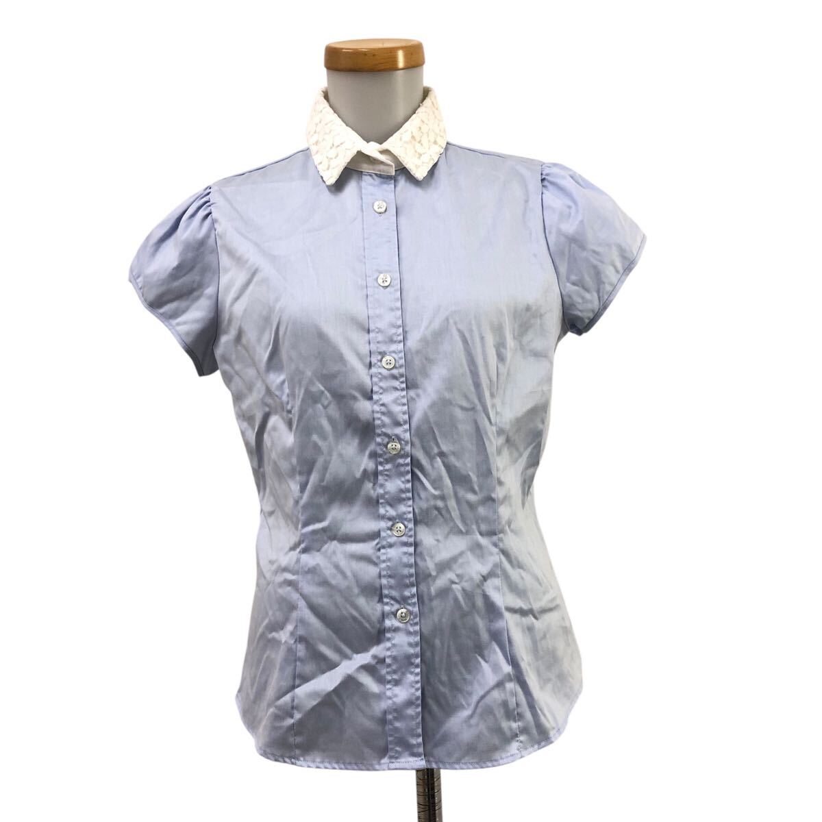 > NC313-13 NARACAMICIE ナラカミーチェ 襟 レース 半袖 シャツ ブラウス トップス レディース 2 ライトブルー 水色
