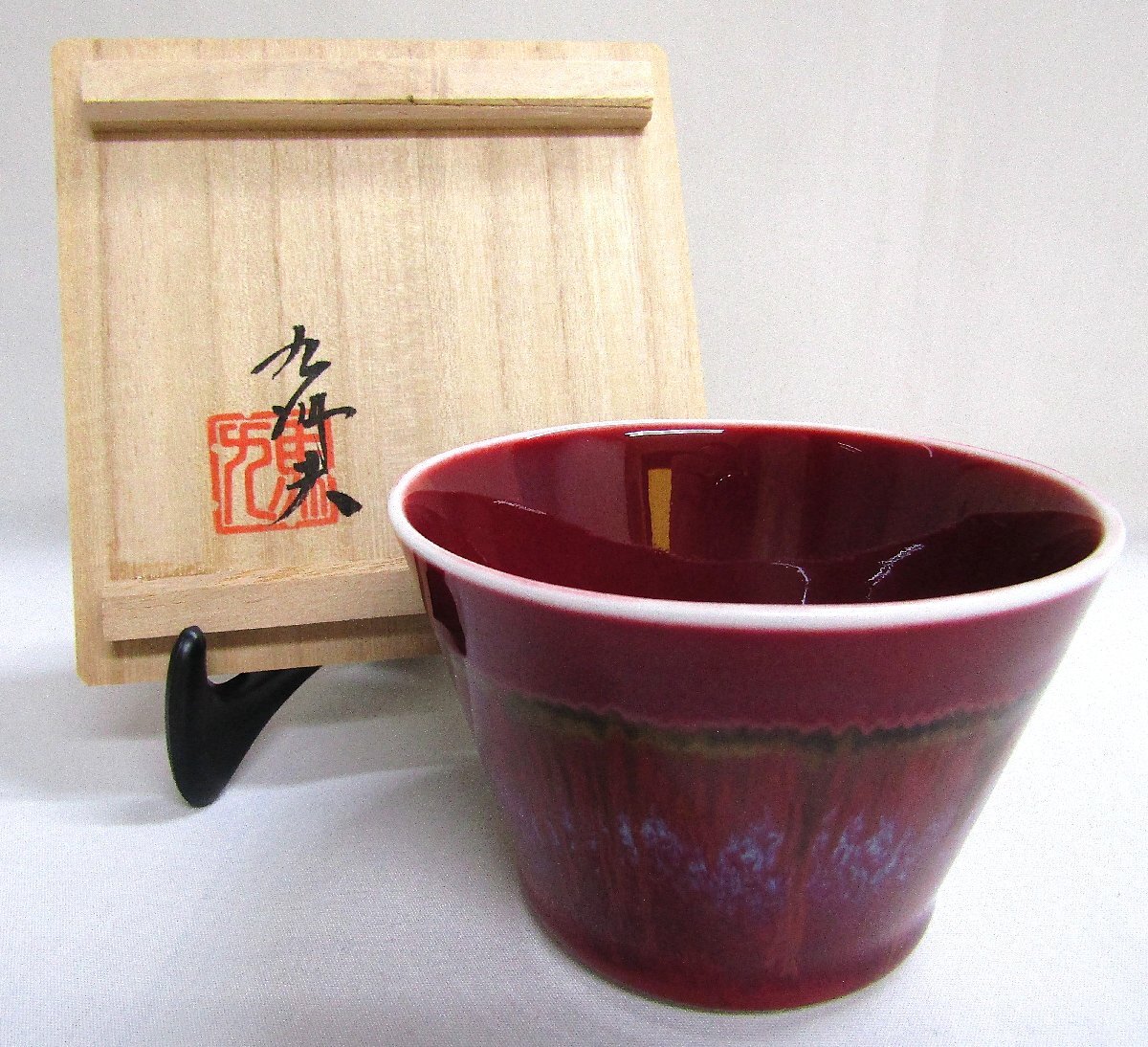 > 未使用 有田焼 真右ェ門窯 辰砂釉彩 蕎麦猪口 日展作家 佐賀美術協会 佐賀県陶芸協会 馬場 九洲夫 真右エ門 送料着払い