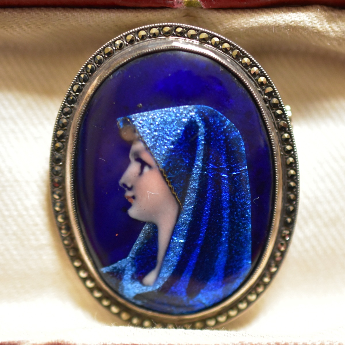 - アンティーク フランス製 リモージュエナメルと通常よりも小さなマルカジットのブローチ 裏にサインあり 本物保証