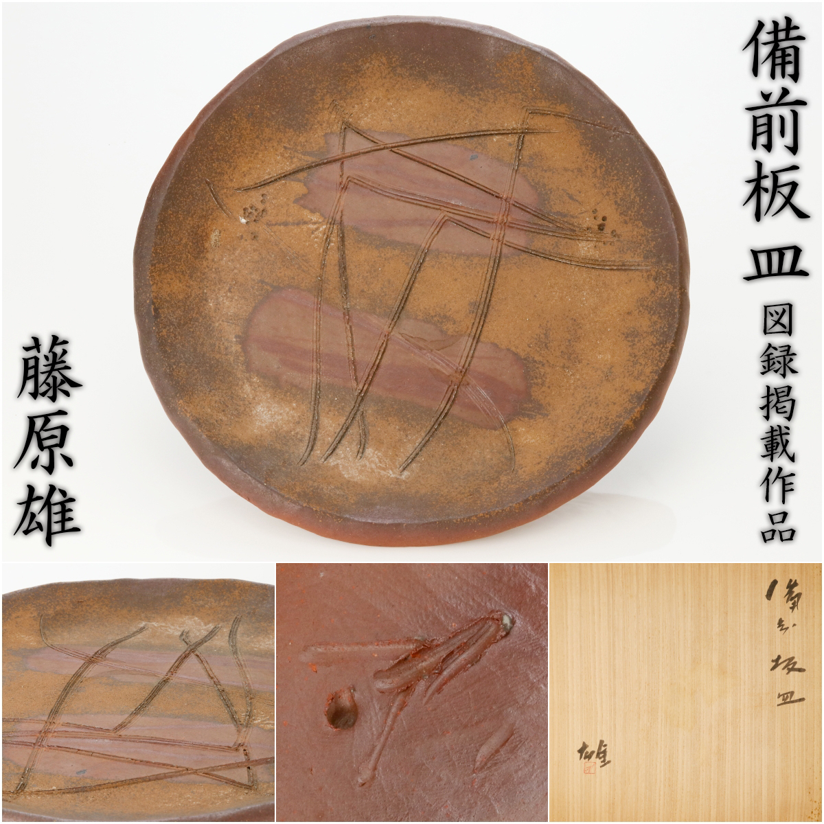 > 藤原雄『備前板皿』図録掲載の大作!最上位希少作 共箱 共布 図録コピー 栞 本物保証 送料無料【松森美術】