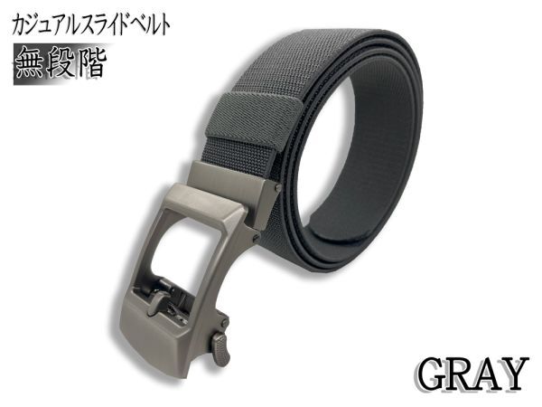 - 新品 スライドベルト ナイロン 伸縮 ゴム カジュアル シンプル 穴なし 穴無し 無段階調整 カジュアル グレー 灰色 cnk039-GRAY