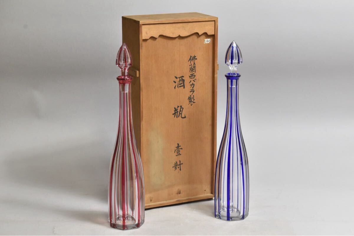 - 【英】◆28◆ 時代 オールドバカラ 色酒瓶一対 H45.5㎝ 西洋美術 日本 佛蘭西 フランス Baccarat ガラス工芸 瓶 酒器 骨董品 美術品
