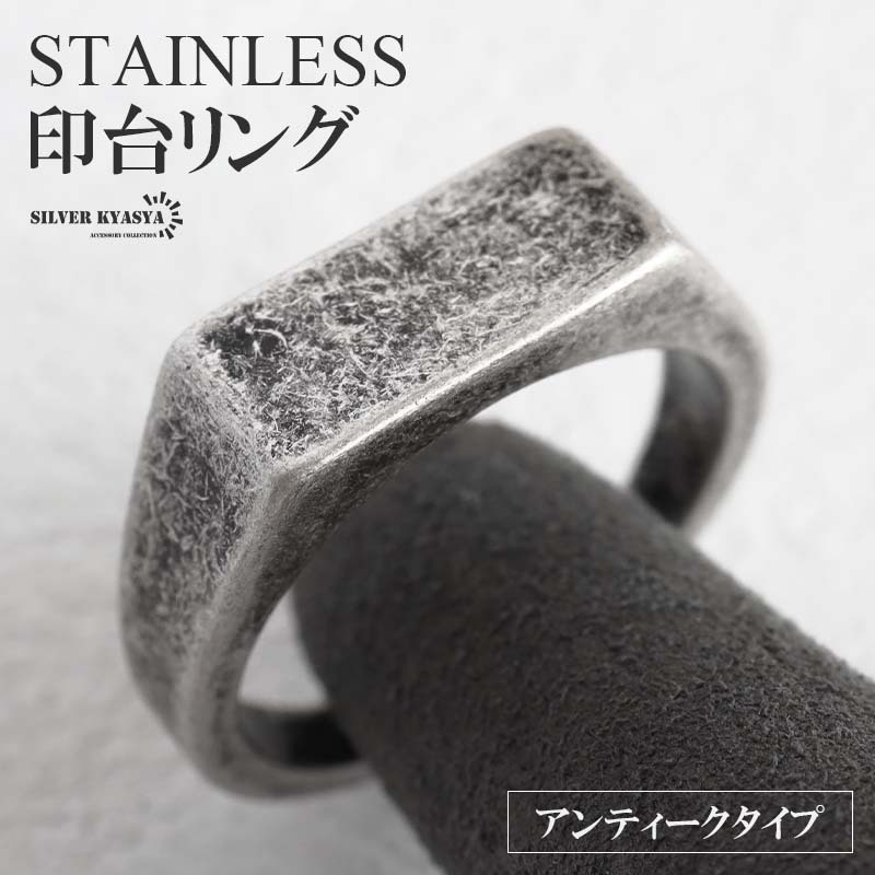- (24号) ステンレス 印台リング 細め アンティークリング シグネットリング 指輪 ブラック シルバー メンズ 金アレ対応