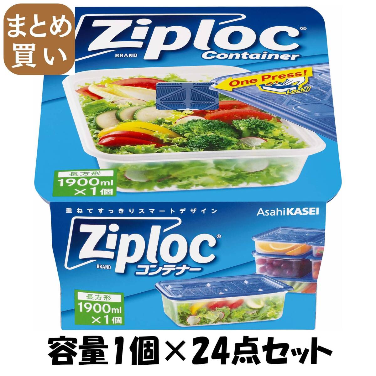 - 【まとめ買い】ジップロック コンテナー 長方形1900ml 1個入 容量1個×24点セット 旭化成ホームプロダクツ 台所用品