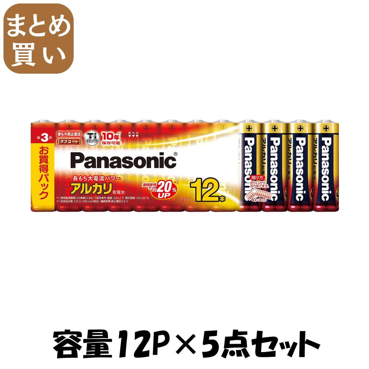 - 【まとめ買い】LR6XJ/12SW アルカリ単三12P 容量12P×5点セット パナソニック 乾電池