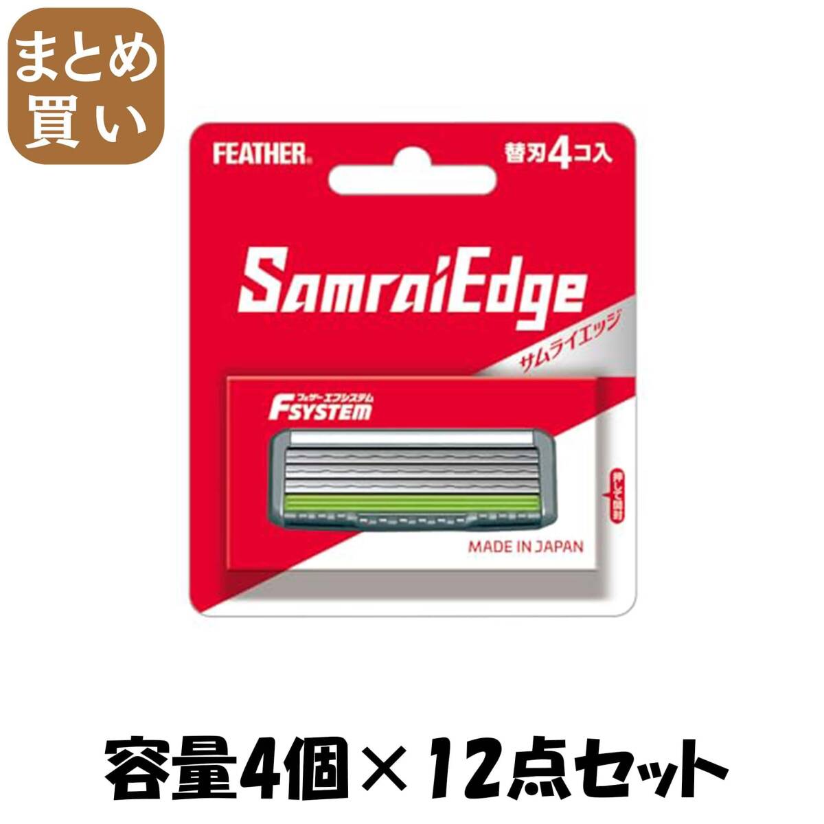 - 【まとめ買い】サムライエッジ替刃4コ入り 容量4コ×12点セット フェザー安全剃刃 男性用カミソリ