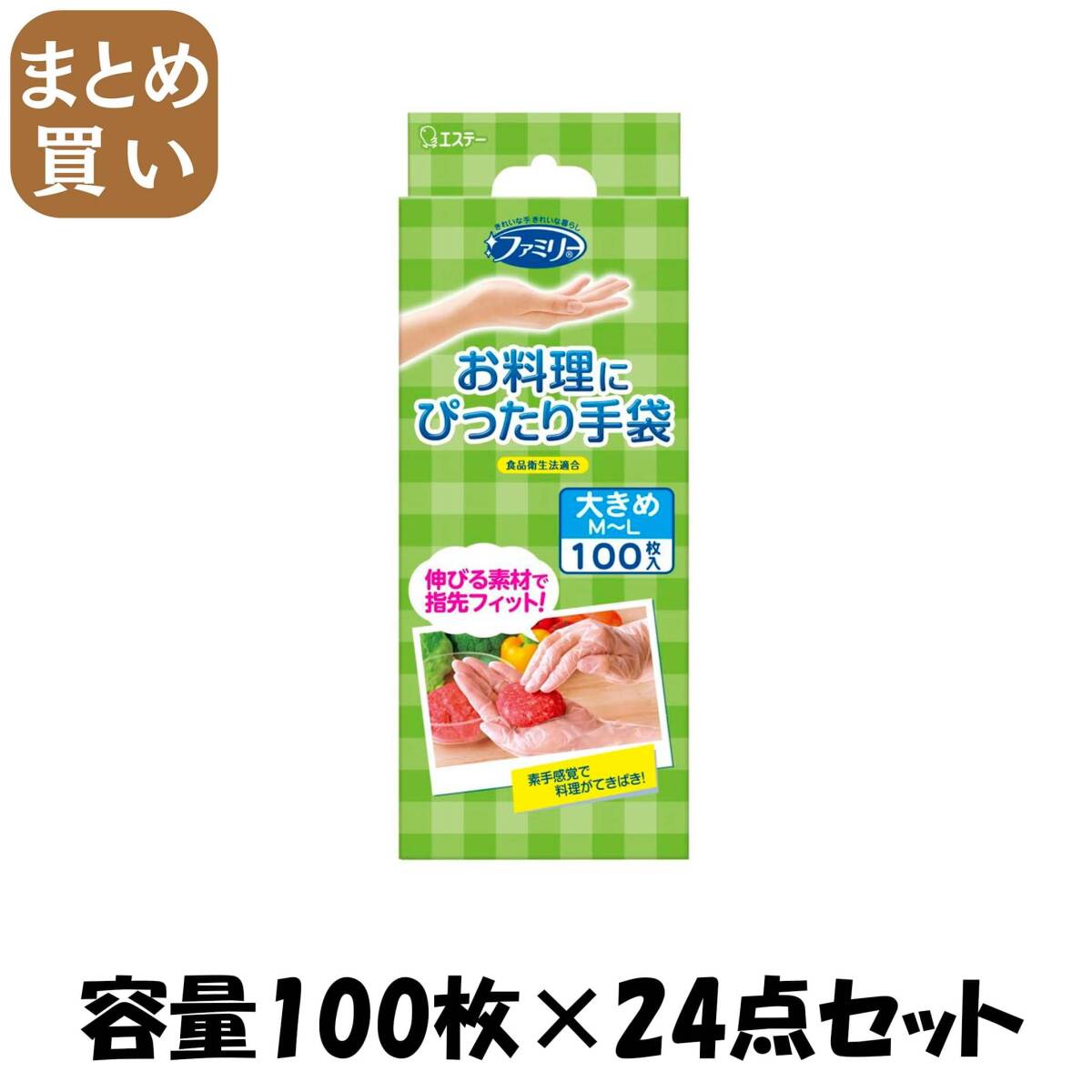 - 【まとめ買い】ファミリー お料理にぴったり手袋 MLサイズ 半透明 100枚 容量100マイ×24点セットエステー 使い捨て手袋