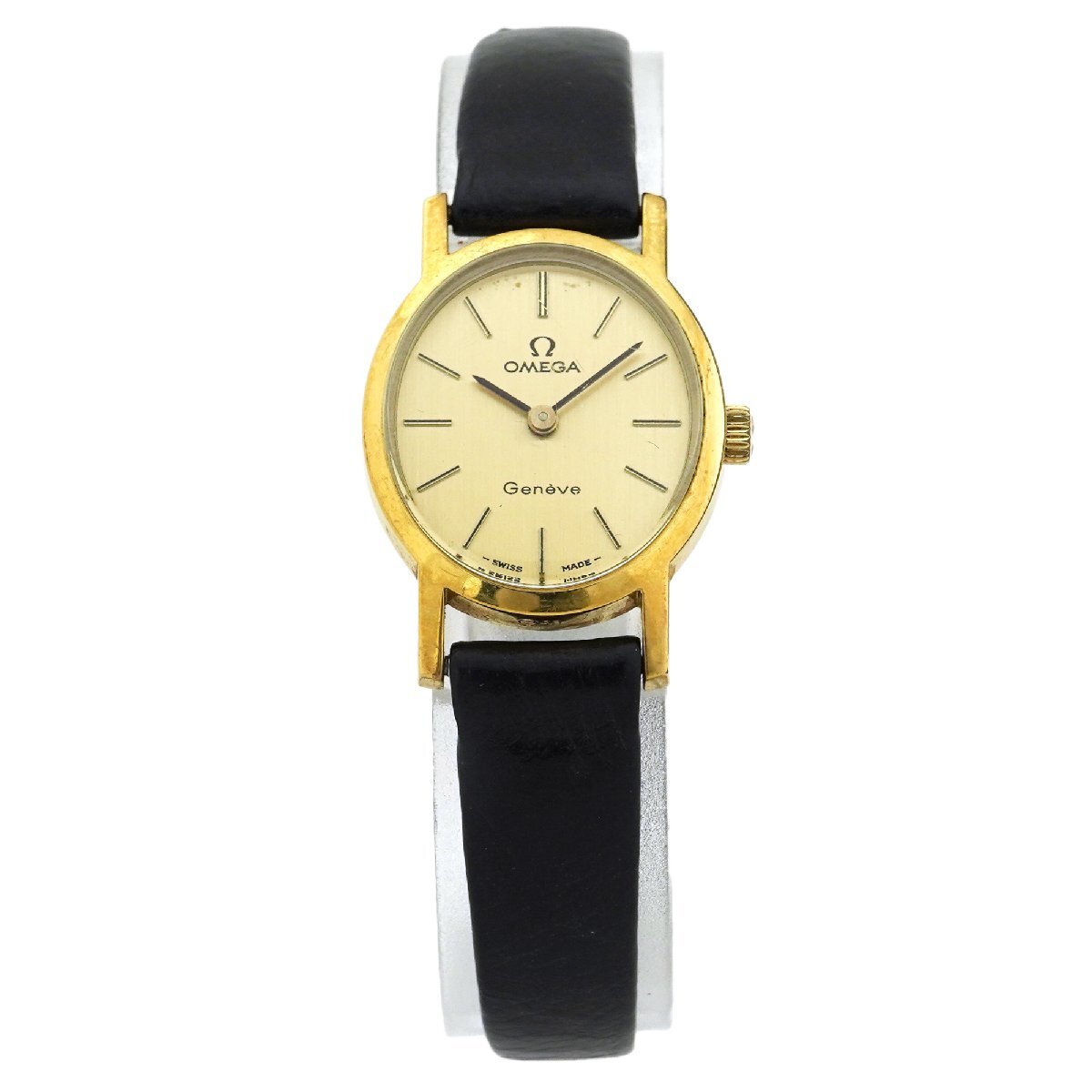 > 【中古稼働品】OMEGA Geneve オメガ ジェネーブ ゴールド文字盤 手巻き レディース 腕時計(K-OT5153)