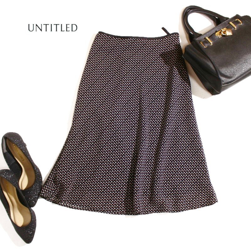 > 美品 アンタイトル UNTITLED 株) ワールド 春 夏 小花柄 フラワー プリント Aライン シフォン タイト フレアスカート 1 ブラック 黒 S 上品