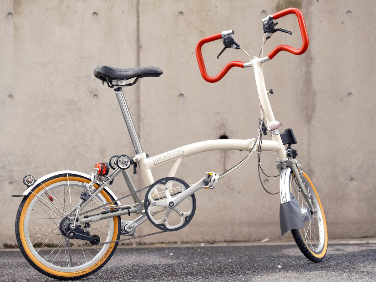 - 世界に一台だけオーナー品ブロンプトン P6L カドワキ粉体塗装 Pハンドル手縫い本革グリップ Brompton 折り畳み自転車
