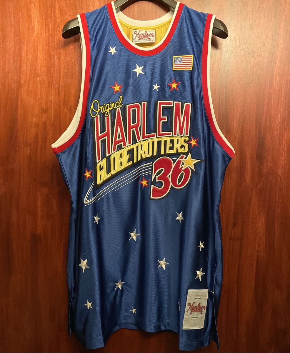 - 激レア タグ付き新古品 MADE IN KOREA製 PLATINUM FUBU × HARLEM GROBETROTTERS バスケットボールジャージ ブルー XLサイズ フブ バスケ