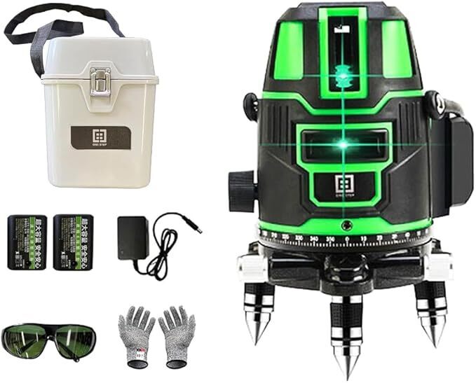 - 墨出し器 5ライングリーンレーザー 水平器4方向大矩ライン照射 自動補正 回転レーザー線 地墨ポイント 受光器対応 DIY屋内・屋外兼 AFD696