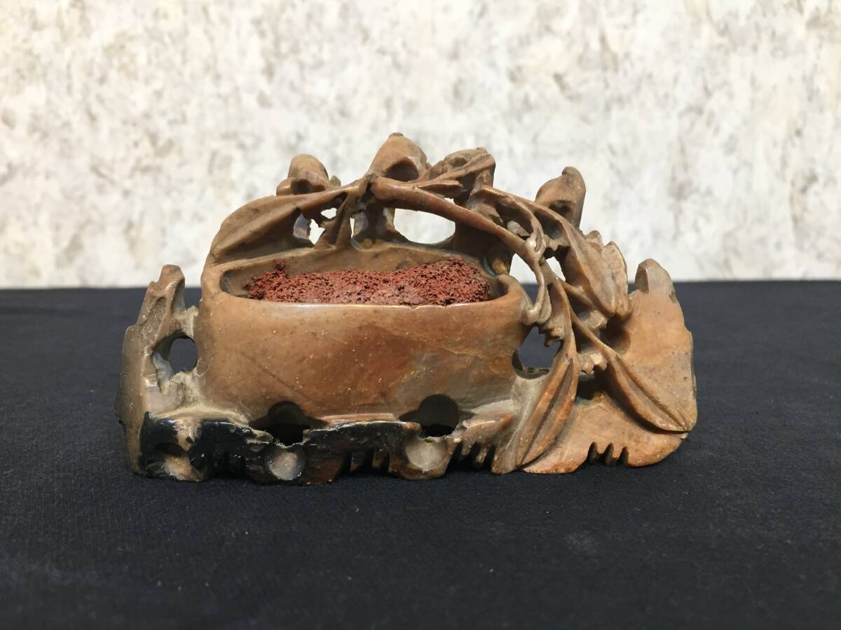 - 『 石彫刻朱肉池 』石製 朱肉入れ 石彫刻 伝統工芸 石工芸 アンティーク レトロ インテリア ジャンク ★古時家★
