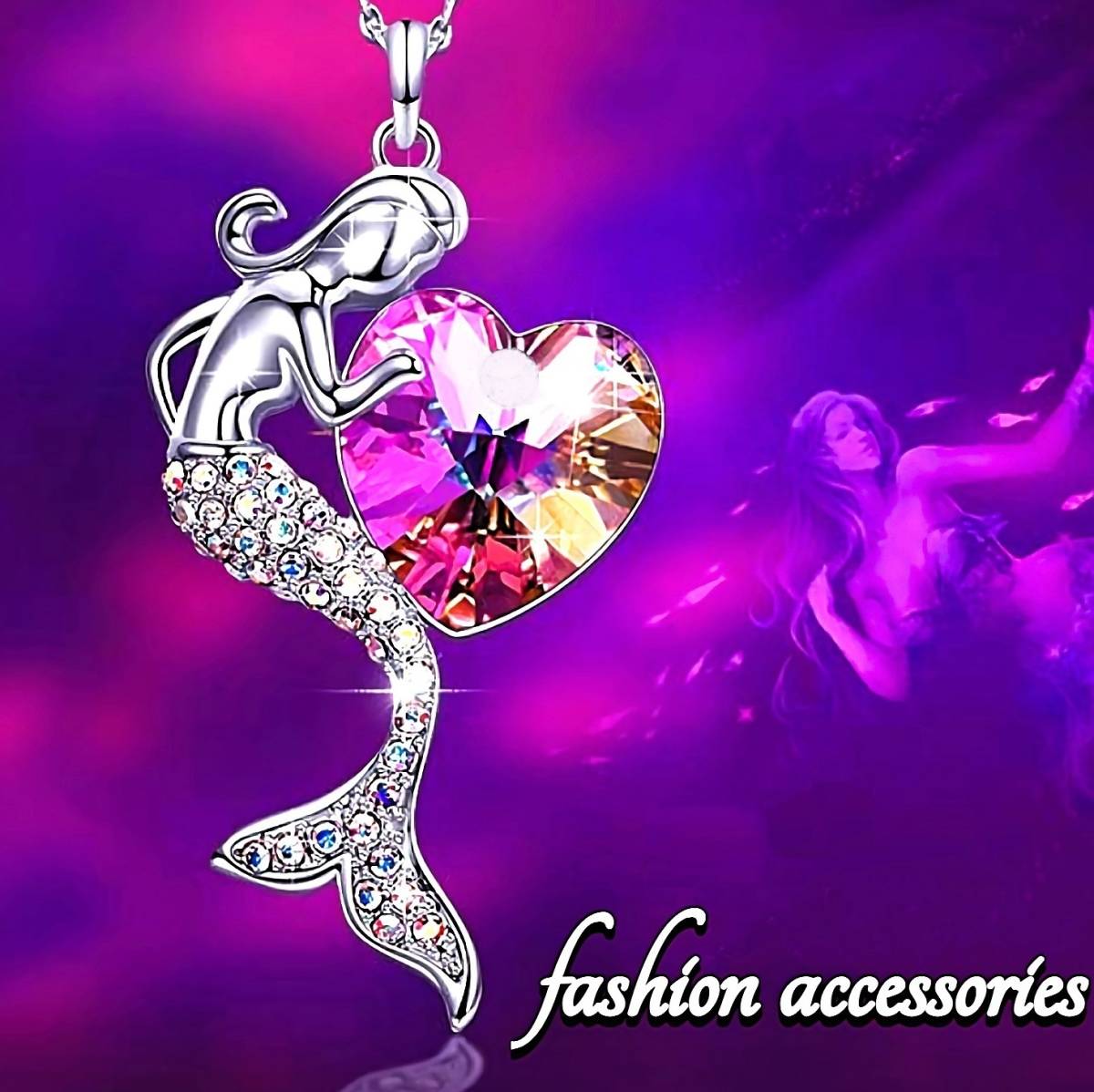 - 新品★送料無料★紫水晶アメジスト人魚ハート虹ダイヤプラチナ仕上925シルバーネックレス誕生日プレゼント連休旅行夏海ギフト国内発送
