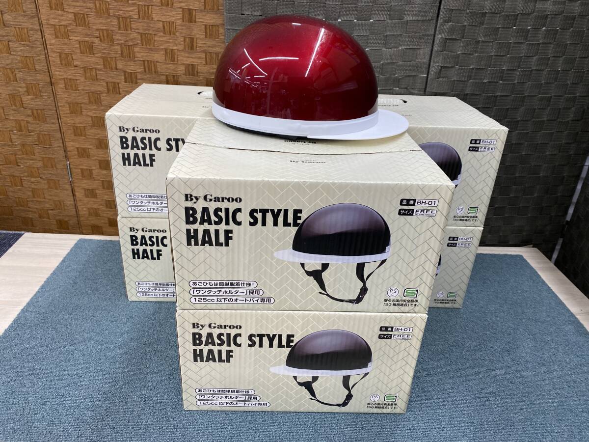 > ユニカー工業 バイク用ヘルメット フリーサイズ ベーシックスタイルハーフ キャンディレッド BH-01R 6点セット 未使用