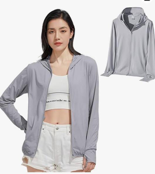 - ラッシュガード レディース 【UVカット&UPF50+】薄手 長袖 パーカー 軽量 涼しい 冷感 トップス 日焼け止め 水着 サイズ: M