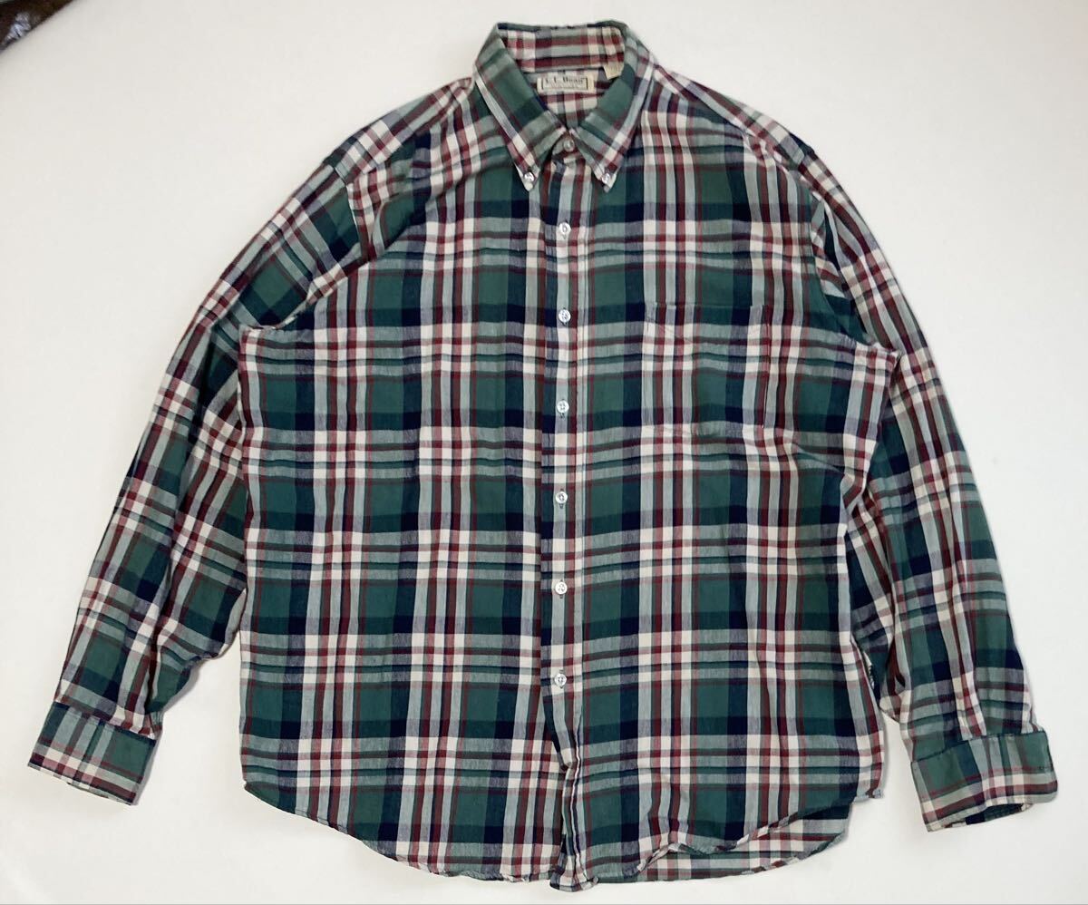- 80s 90s アメリカ製 LLBEAN エルエルビーン 長袖シャツ チェック リペアあり
