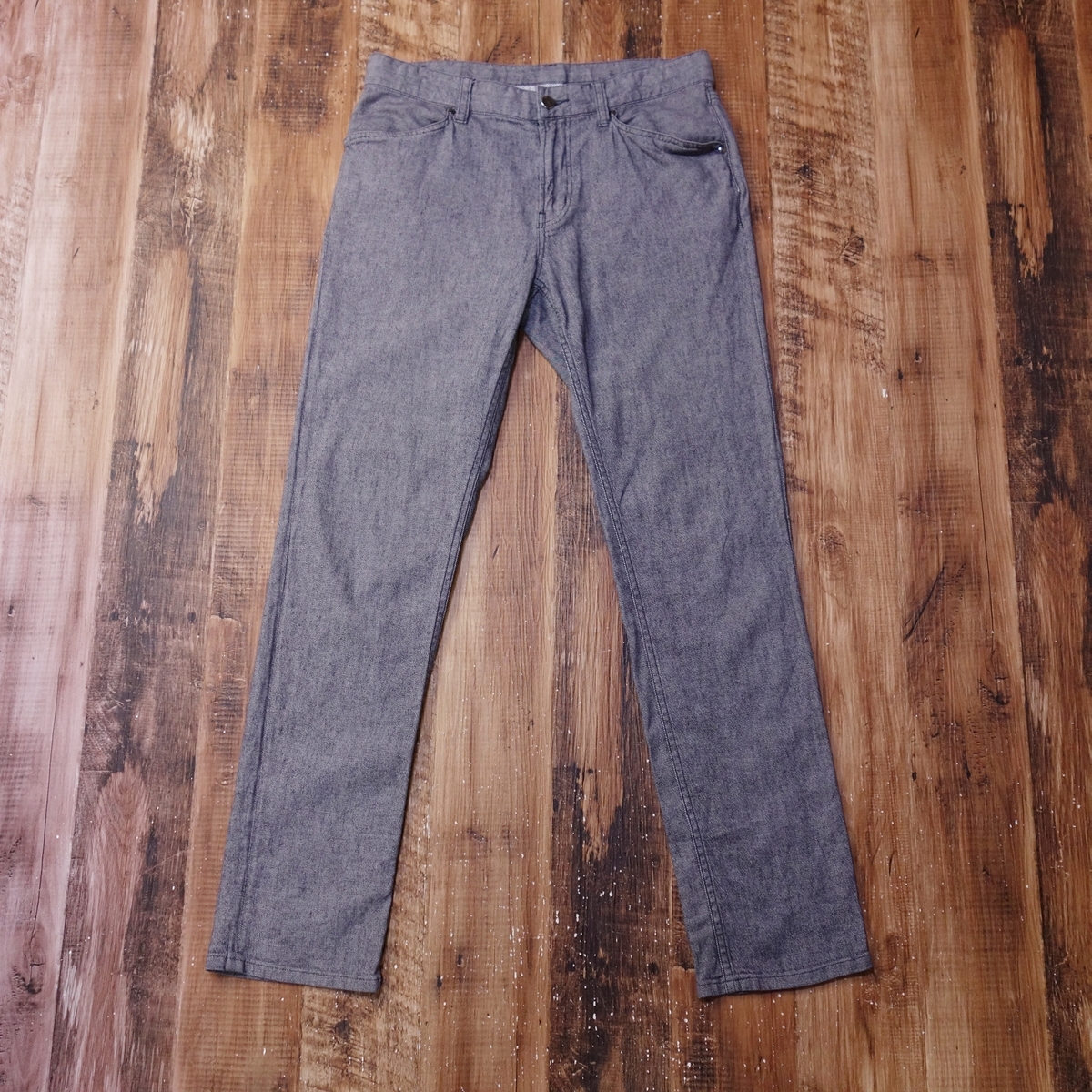 > 美品 コムサイズム COMME CA ISM ストレッチスリムデニムパンツ メンズ 綿麻 ファイブフォックス Mサイズ グレー QA7