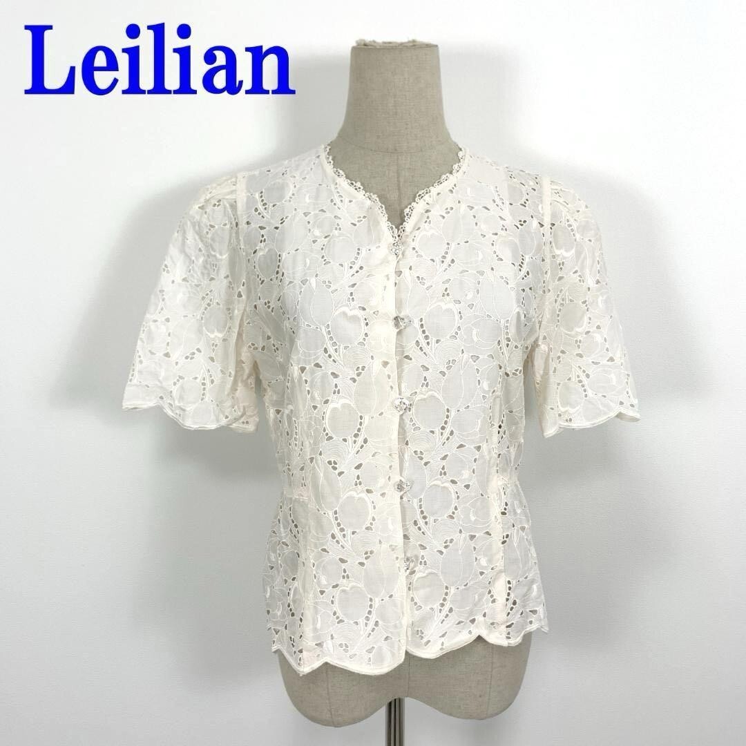 - Leilian レリアン 半袖ブラウス 薄ピンク 総レース フリル シャツブラウス ピンクベージュ コットン100%綿100% 9 C3762