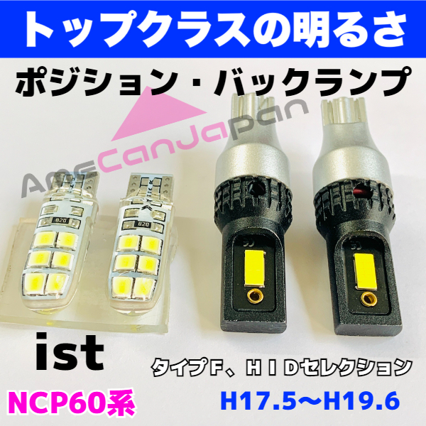 - ist NCP60系 タイプF 純正球交換用 T16 LED バックランプ 新型 3570 CSPチップ+T10 ポジション/車幅灯 ウェッジバルブセット