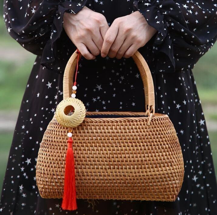 - 高級竹編細工美品 竹編み上げ カゴバック 手作りバスケット お洒落買い物カゴ 収納バッグ デザイン