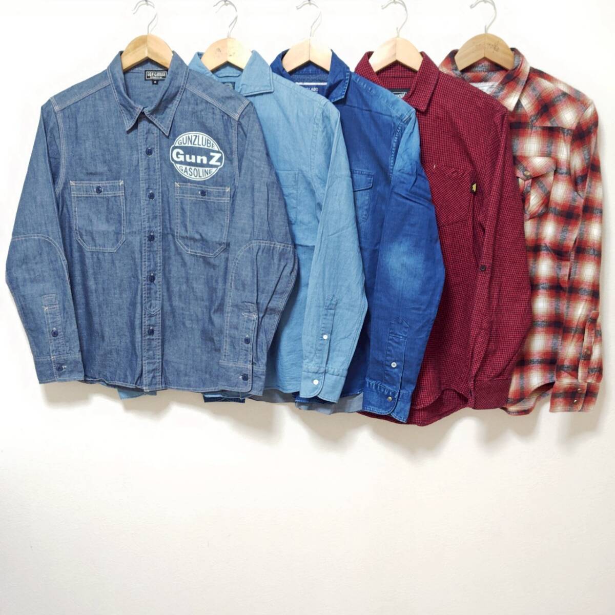 - お得!!【まとめ売り】長袖 シャツ 5着 セット G&Nガレージ RIELABO WOVEN GOODS ベニーゴールド GUNZ デニム ダンガリー ワーク S/Y35194j