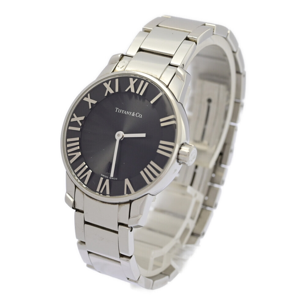 > TIFFANY&Co. ティファニー ブラック文字盤 デイト クォーツ 時計/SS/stainless steal-59.0g/シルバー/ウォッチ/プレゼント■585517