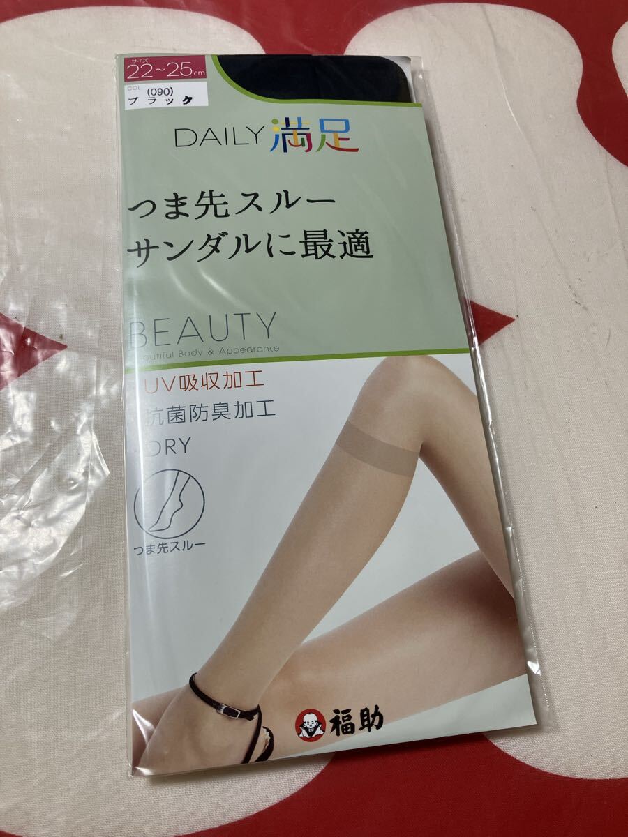- 福助 daily満足 つま先スルー サンダルに最適 ブラック high socks ハイソックス 靴下 黒 ショートストッキング short stocking ドライ dry