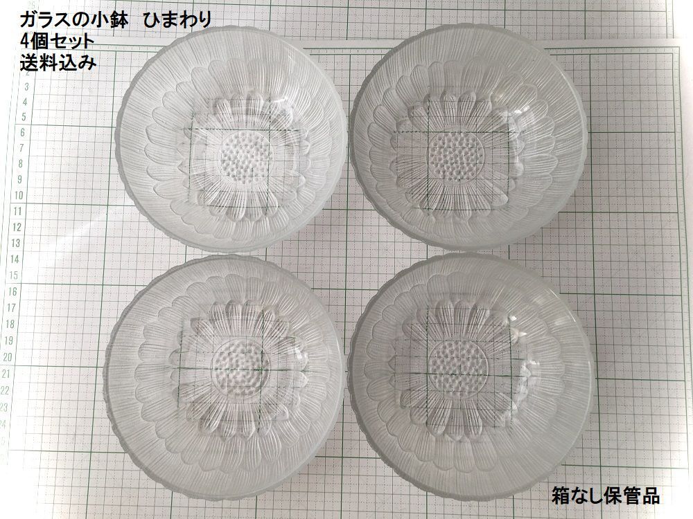 - ガラスの小鉢 ひまわり 4個セット 使い勝手の良いサイズ USED美品 送料込み 花 ヒマワリ 器