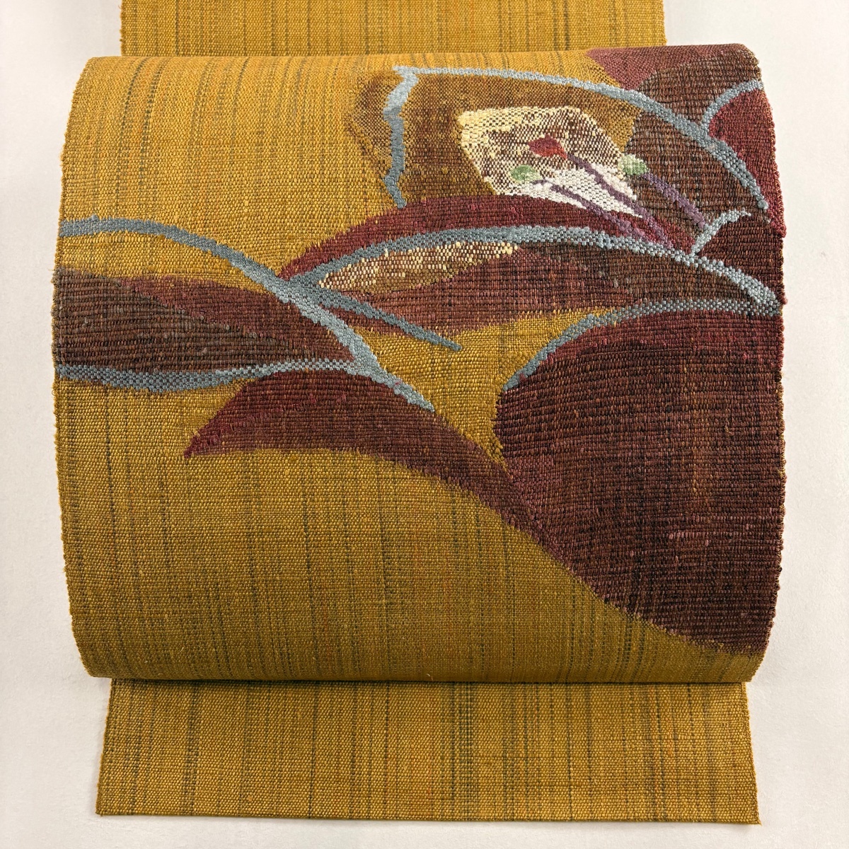 - 名古屋帯 美品 秀品 八寸名古屋帯 松葉仕立て 紬地 幾何学 金糸 山吹茶色 正絹 【中古】