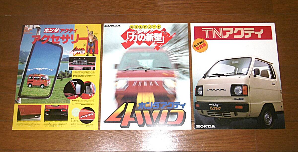 > 【即決】昭和57‐58年「ホンダ・アクティ TNアクティ(ビッグキャブ)/アクティ4WD/アクティ・アクセサリー 3点セット」