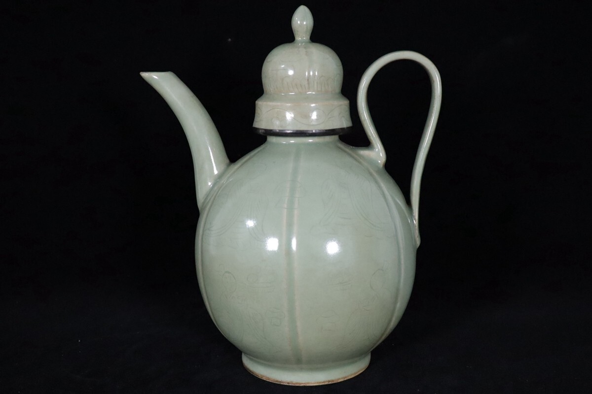 - 「北宋 越窯 陶磁器 青釉嵌銀 酒壺」染付 置物 擺件 古賞物 中国古美術 旧蔵出