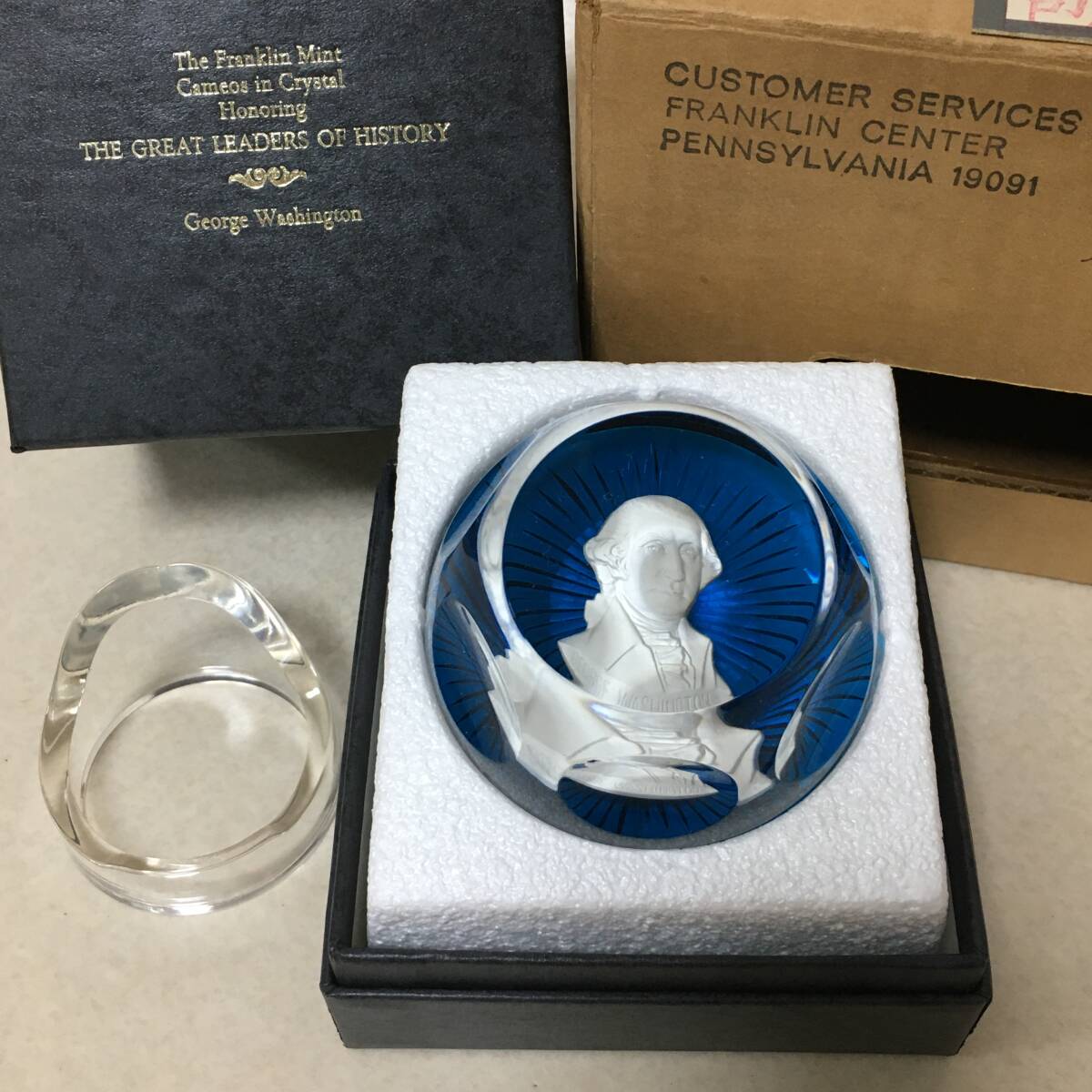 - 【E241】バカラ×フランクリンミント/ジョージ・ワシントン /ペーパーウェイト 文鎮 置物 共箱 カメオ・イン・クリスタルガラス Baccarat