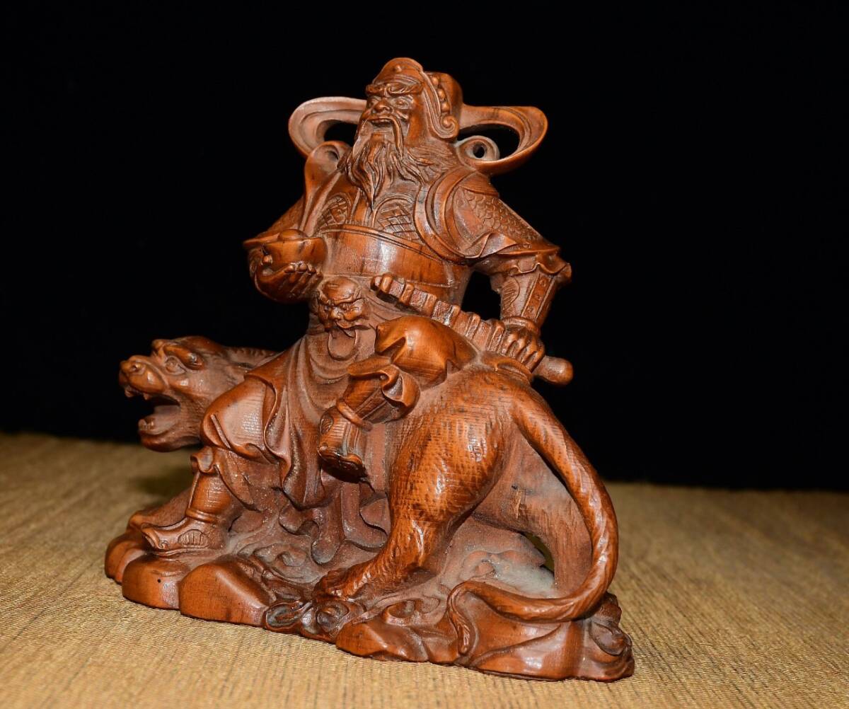 > 蔵友旧蔵出 小葉黄楊木製 細密彫 武財神 趙公明像 文房具 供養品 置物擺件 稀少珍藏品 古賞物 中国古玩 中国古美術品
